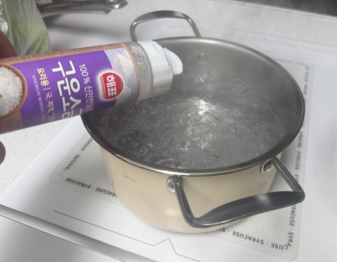 물이 끓으면 소금은 반스푼 넣어줍니다.