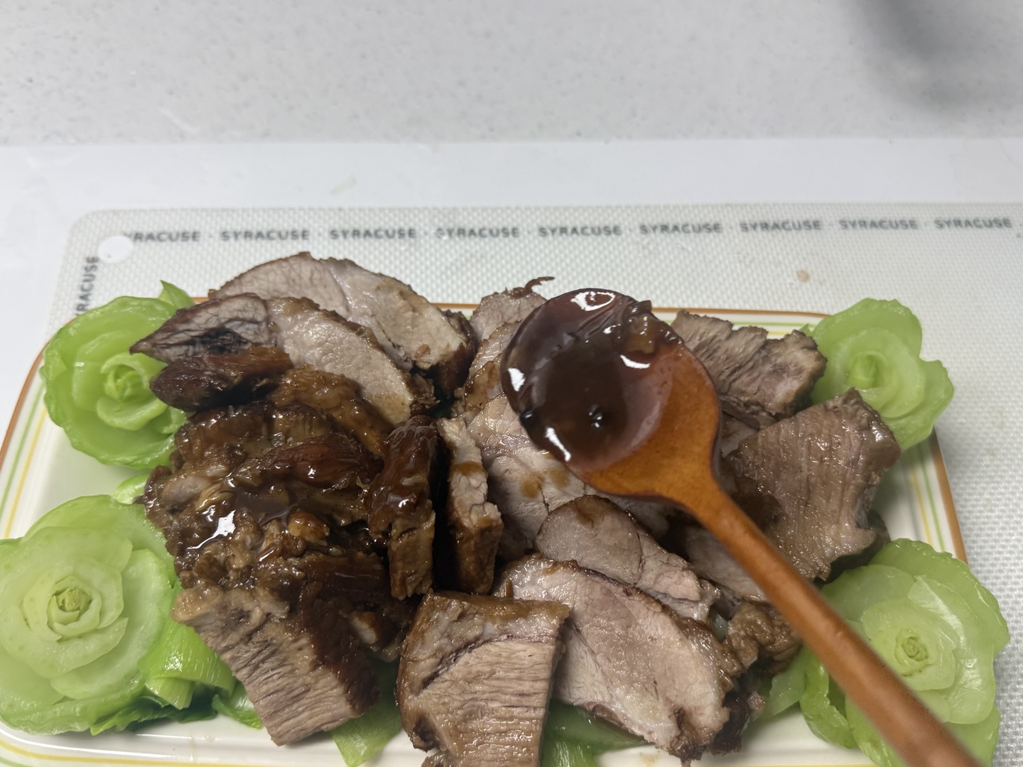 썰어놓은 동파육에 얹어줍니다.